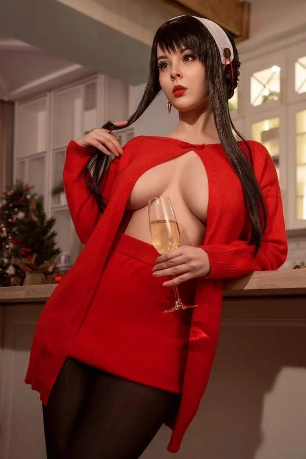 Хелли Валентайн представила, как бы могла подготовиться к празднику Йор Форджер из аниме Spy x Family. Вышел яркий красный образ. Не обошлось и без эротики, свойственной большинству косплея Хелли.
