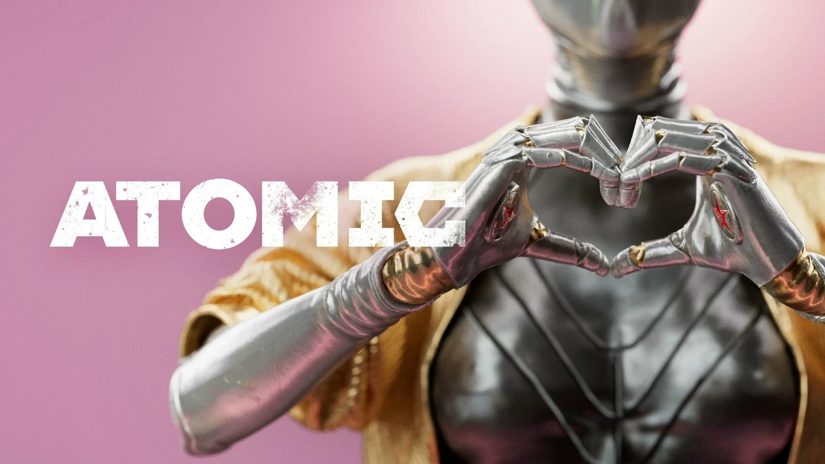 Создатели Atomic Heart из Mundfish показали креативный постер. Одна из близняшек сложила пальцами сердечко, заменяющее слово Heart в названии шутера.