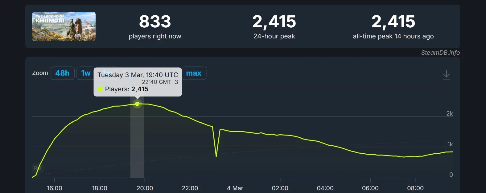 Онлайн The Legend of Khiimori в Steam. Источник: SteamDB
