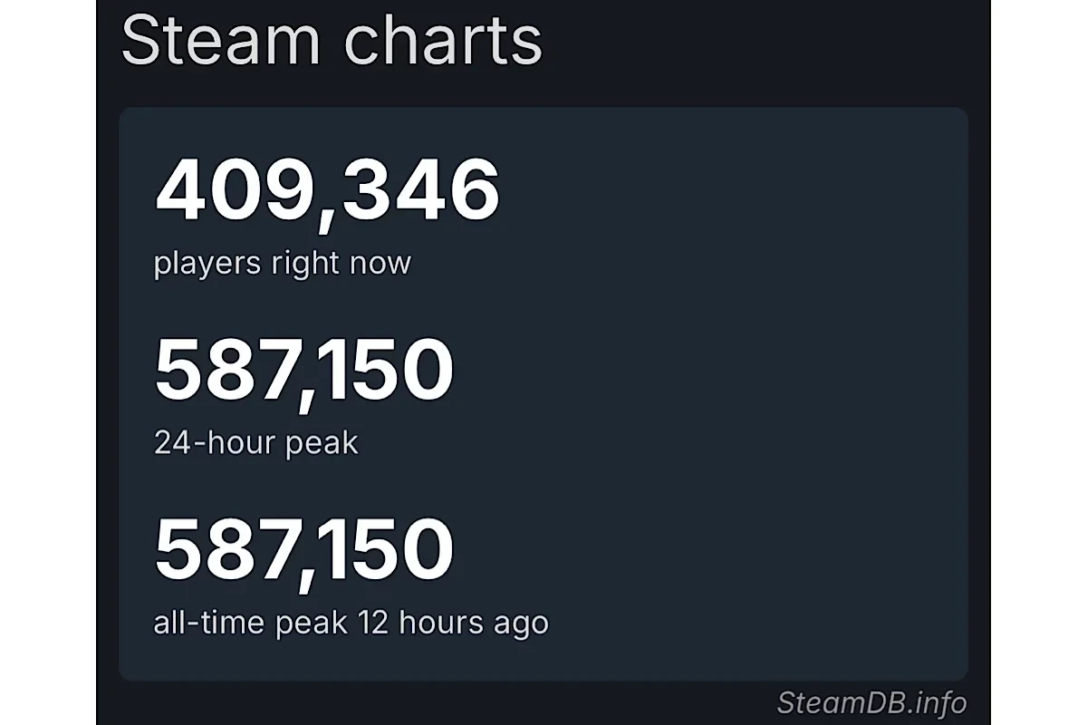 Тем временем игра продолжает набирать обороты, привлекая все больше пользователей Steam. Пиковый онлайн уже приблизился к 600 тысячам — более 587 тысяч на момент написания новости.
